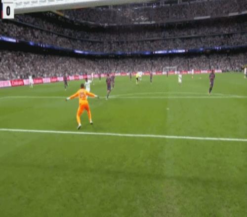 在本赛季,姆巴佩可谓状态爆棚,各项赛事12场打入15球送出2次助攻,平均每74分钟打入1球,西甲则是79分钟打入1球。 前9轮西甲,姆巴佩打入10球,成为自2014-15赛季的C罗(17球)以来第一位做到这一点的皇马球员。 略显遗憾的是,在俱乐部、国家队连续11场打入15球之后,姆巴佩10月22日被尤文零封,未能追平C罗保持的连续12场进球纪录。 上赛季4次对阵巴萨,姆巴佩仅在联赛主场对巴萨一战未能破门,其他3场打入5球,西甲客场更是完成了帽子戏法。职业生涯8次对阵巴萨,姆巴佩更是打入11球送出1次助攻。 比赛的第11分钟,费尔明解围失误,姆巴佩禁区前凌空爆射破门。随后,视频助理裁判介入判罚,并且最终认定姆巴佩越位在先,进球无效。