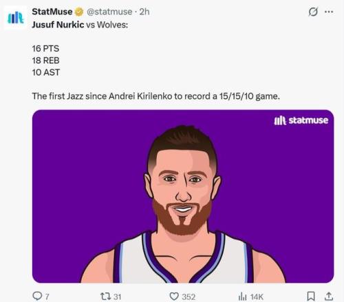 除了两大新星之外,爵士队之所以能够完成爆冷也与内线老将努尔基奇的爆发有关,本场努尔基奇11中7爆砍16分18板10助三双数据,外加1断1帽。