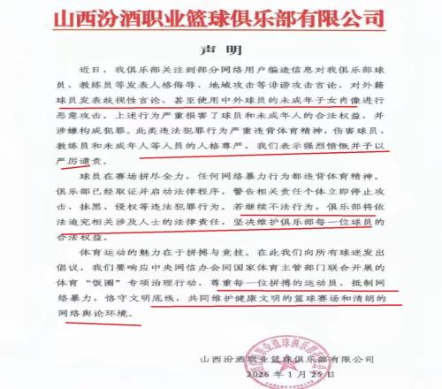 与此同时,山西队还呼吁,大家要尊重每一个努力拼搏的球员,要抵制网络暴力,要维护一个健康,文明的篮球赛场和网络舆论环境。