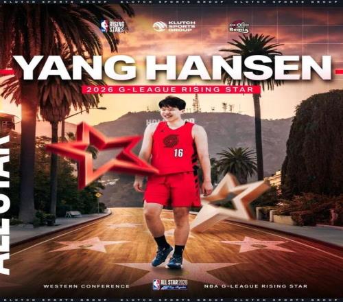 杨瀚森以G联赛身份入选2026年NBA全明星新秀挑战赛,队友分别是肖恩-伊斯特二世(盐湖城星)、小罗恩-哈珀(缅因凯尔特人)、加西亚(奥斯汀马刺)、尼德豪泽(圣迭戈快船)、阿利贾·马丁(猛龙905)和牛顿(毒蛇),主帅为小里弗斯。