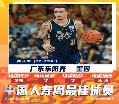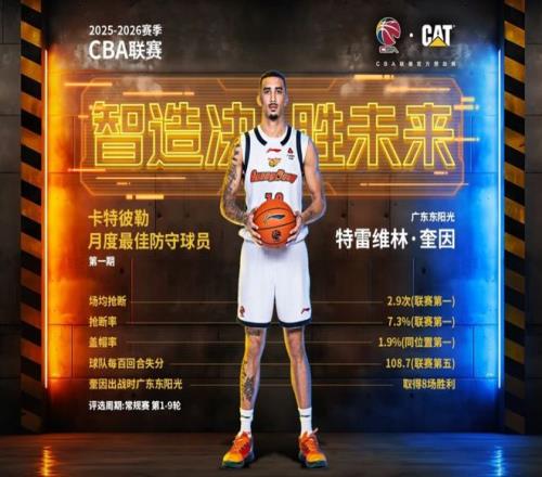 奎因将这种特点带到了CBA联赛,实际上他在CBA拿到的首个奖项是月最佳防守球员。 在2025-26赛季CBA第一期月最佳防守球员评选中,奎因凭借出众的防守数据当选,彼时他 场均送出2.9次抢断,抢 断率高达7.3%,两项数据均领跑全联盟,1.9%的盖帽率亦位居同位置球员榜首。